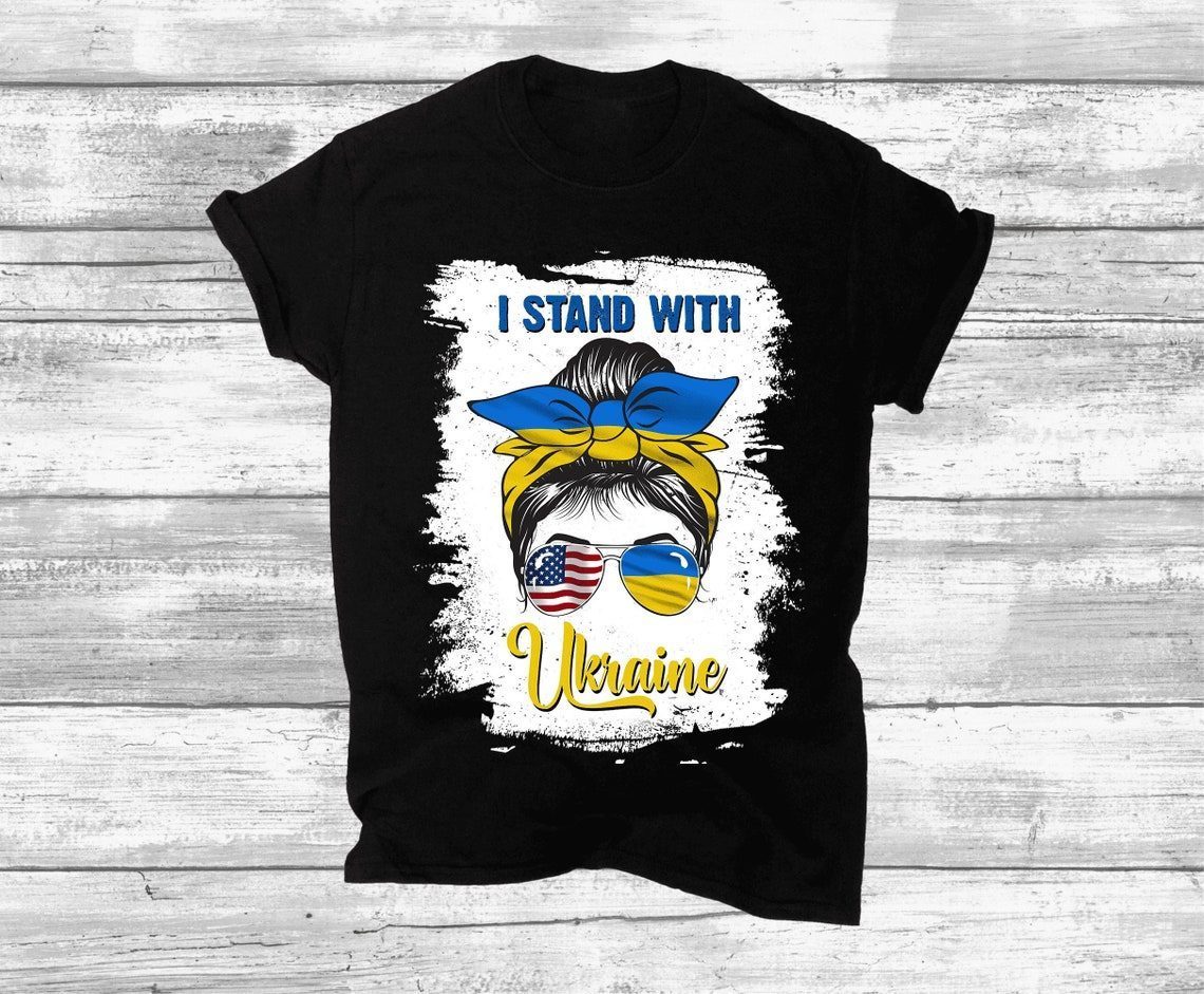 Messy Bun I Stand With Ukraine Ukrainian Flag America Flag Classic Shirt