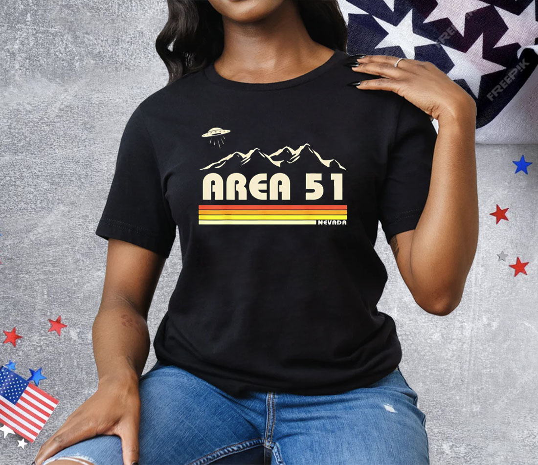 Area 51 Nevada UFO shirt, alien conspiracy t-shirt, flying saucer graphic tee, Groom Lake apparel, unisex sci-fi Area 51 shirt, retro alien shirt, Nevada desert UFO hunter shirt, extraterrestrial believer tee, alien abduction shirt, Roswell-style UFO merch