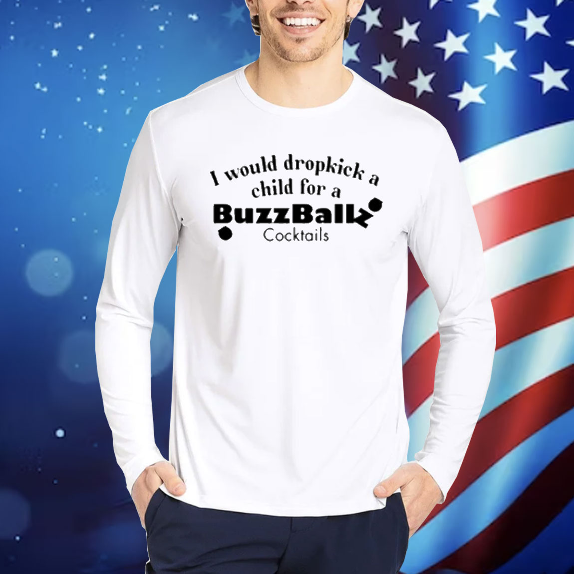 Don’t miss out on the chance to own this exclusive and unforgettable shirt. Order yours today and let the world know that you’re not afraid to dropkick a child for a Buzzballz Cocktail!